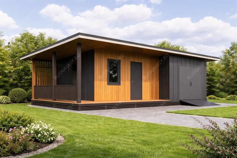 • Навес к частному дому для автомобиля ГРИМСТАД