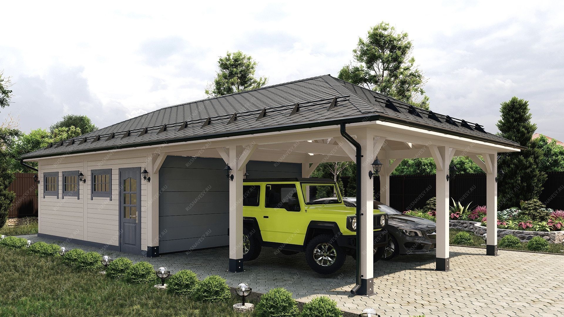• Навес к частному дому для автомобиля ГРИМСТАД