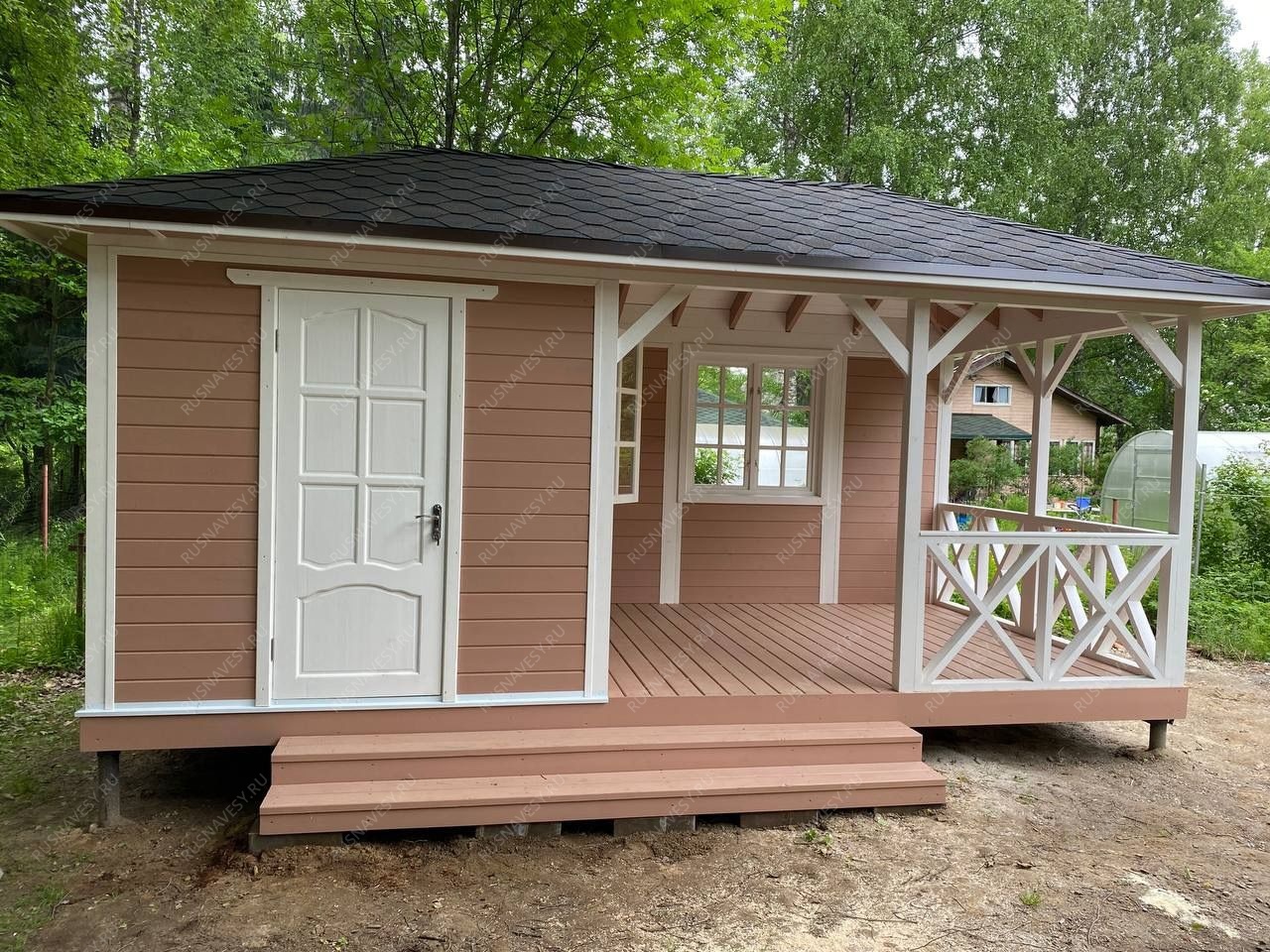 Имитация бруса 16×135 мм внутри, имитация бруса 21×135 мм снаружи.