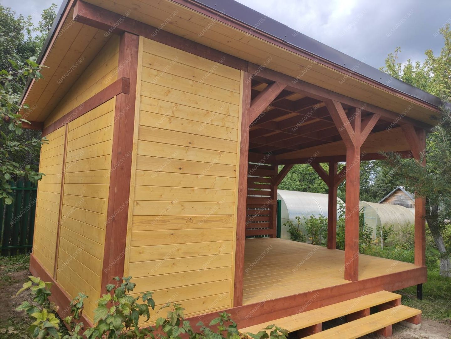 Вся конструкция обрабатывается декоративным деревозащитным составом в 2 слоя - при необходимости дополнительно.