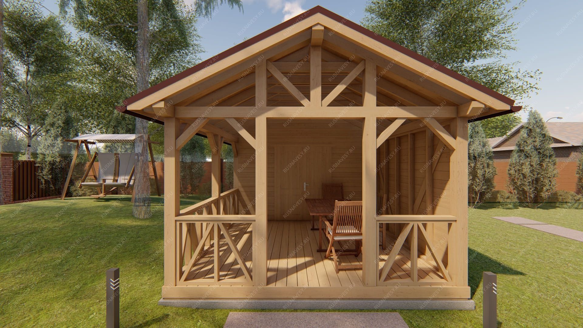 Конструкция изготовлена из хвойных пород древесины (ель, сосна). Материал — массив сухой строганный камерной сушки + клееный брус. В крепеже не используем черных саморезов, только желтопассированные. Крепеж не является сборно – разборным..