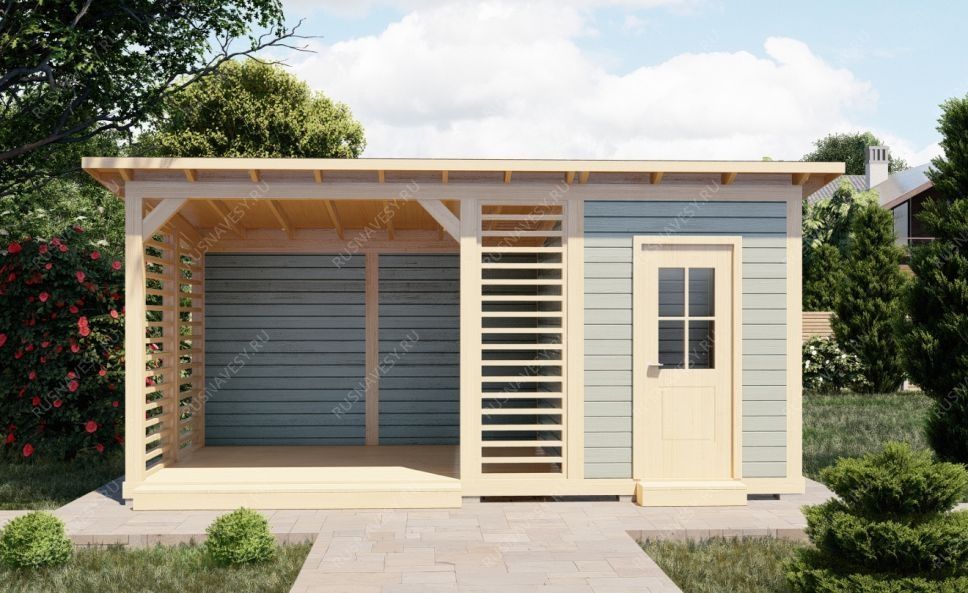 • Навес к частному дому для автомобиля ГРИМСТАД