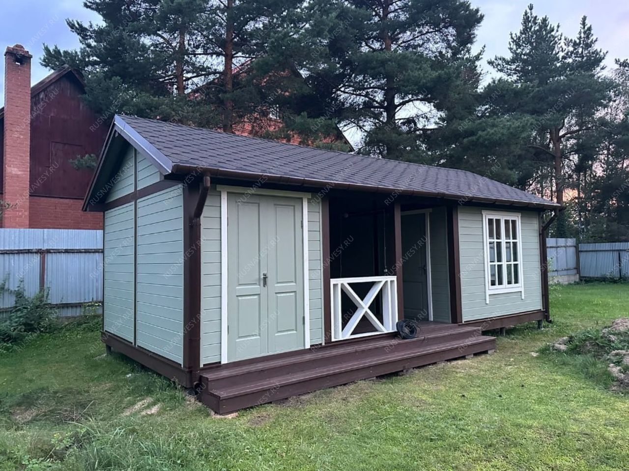 Вся конструкция обрабатывается декоративным деревозащитным составом в 2 слоя - при необходимости дополнительно.