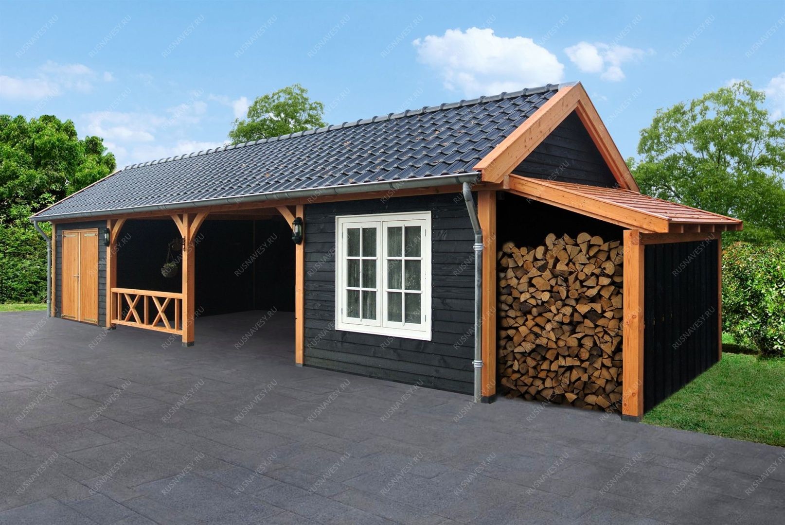 • Навес к частному дому для автомобиля ГРИМСТАД