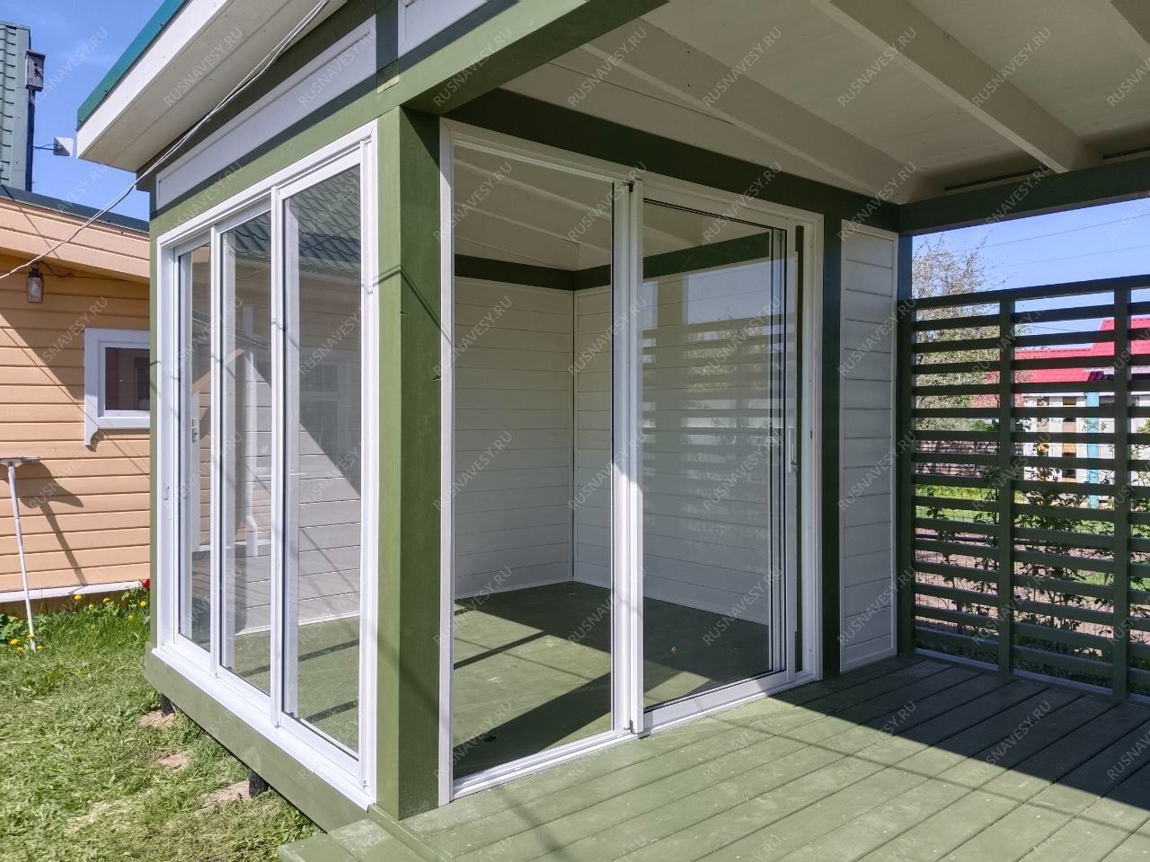 Конструкция изготовлена из хвойных пород древесины (ель, сосна). Материал — массив сухой строганный камерной сушки + клееный брус. В крепеже не используем черных саморезов, только желтопассированные. Крепеж не является сборно – разборным..