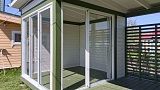 Раздвижная алюминиевая система. Окна в бронирующей пленке. Цвет пластика белый или коричневый.