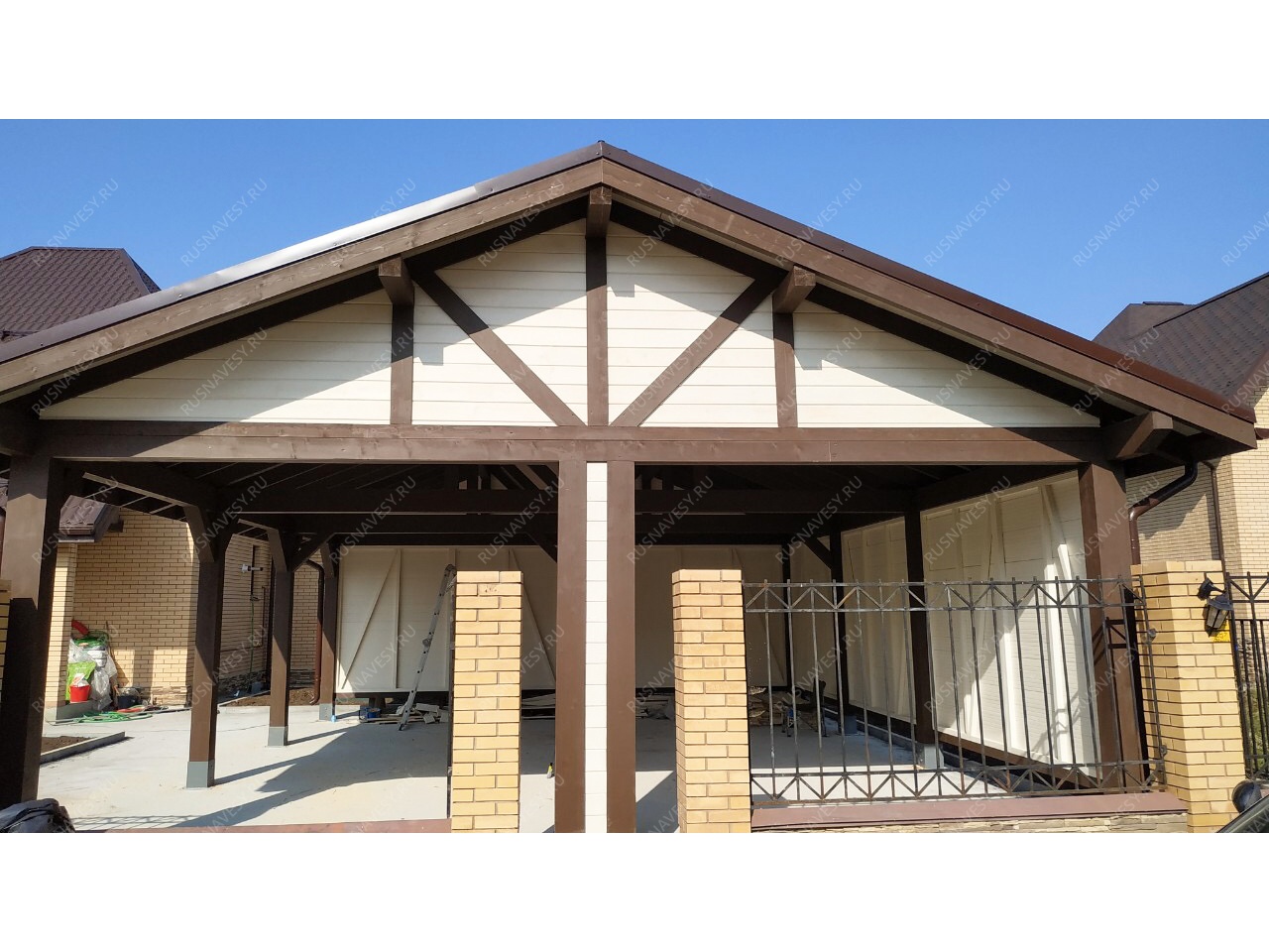 Навес-гараж для двух авто ВИК — капитальное деревянное сооружение, предназначенное для всесезонного укрытия двух транспортных средств с повышенным комфортом. Габариты 7,6×9 м и площадь 68,4 м² создают обширное пространство, достаточное не только для парковки, но и для свободного обслуживания автомобилей, хранения сменных колес или другого инвентаря. Двухскатная кровельная система с выраженным коньком обеспечивает эффективный сток осадков, предотвращая их скопление и снижая нагрузку на стропильную часть. Силовой каркас возведен из массивного бруса сечением 190×190 мм и балок до 140×240 мм — эти элементы, выполненные из древесины хвойных пород заводской сушки, гарантируют геометрическую стабильность и долговечность конструкции. Отсутствие интегрированного хозблока фокусирует все пространство исключительно на парковочных задачах. Пропорциональная архитектура и качественные натуральные материалы делают ВИК эстетически привлекательным дополнением к загородному дому. Профессиональная сборка под ключ включает полное сопровождение проекта — от доставки до финальной уборки, обеспечивая владельцу максимальное удобство.