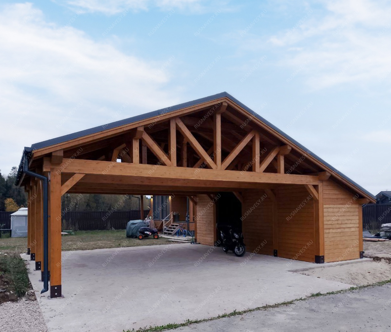 Навес к частному дому для автомобиля ГРИМСТАД