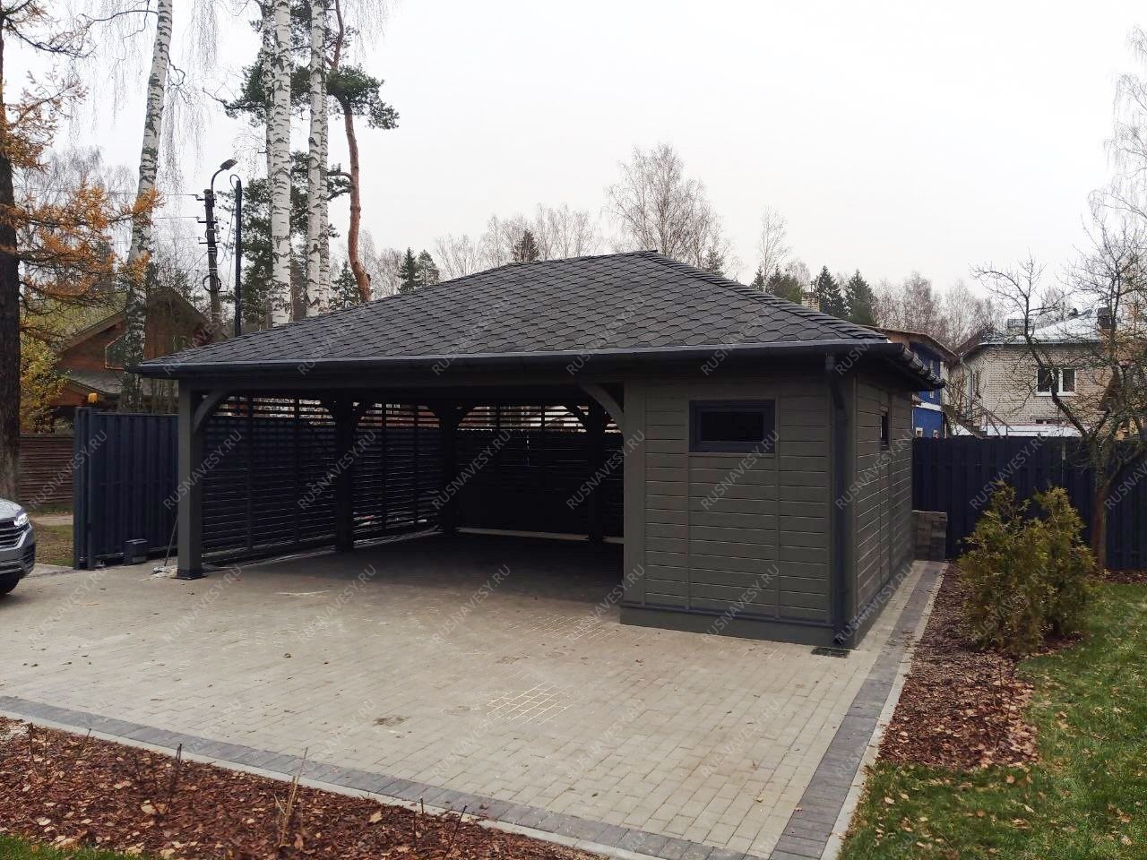 • Навес к частному дому для автомобиля ГРИМСТАД