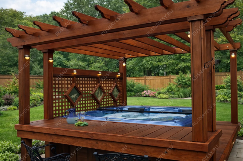 Перголы из дерева сочетают в себе природную красоту и современные дизайнерские решения, создают идеальное место для отдыха и различных видов досуга на открытом воздухе. Перголы могут стоять отдельно или быть частью композиции с другими элементами сада. Деревянная пергола придаст вашему садовому участку теплую и уютную атмосферу.Также пергола может служить опорой для плетущихся растений - только представьте, как приятно находиться в окружении цветущего клематиса или пышных роз! Дополнительные элементы, такие как встроенное освещение, декоративные решетки, качели или скамейки, могут усилить визуальный эффект и создать еще более комфортное пространство. А если в конструкцию перголы добавить подиум, то он может служить местом для расслабления или стать сценой для семейных мероприятий. Пергола с навесом обеспечивает надежную защиту от солнечных лучей, создавая тенистое пространство для отдыха. Она станет идеальным местом для встреч с друзьями, чтения книг или приема пищи на свежем воздухе. Любая пергола не только украшает ваш сад, но и предоставляет функциональное пространство для приятного времяпровождения на природе с семьей и друзьями.