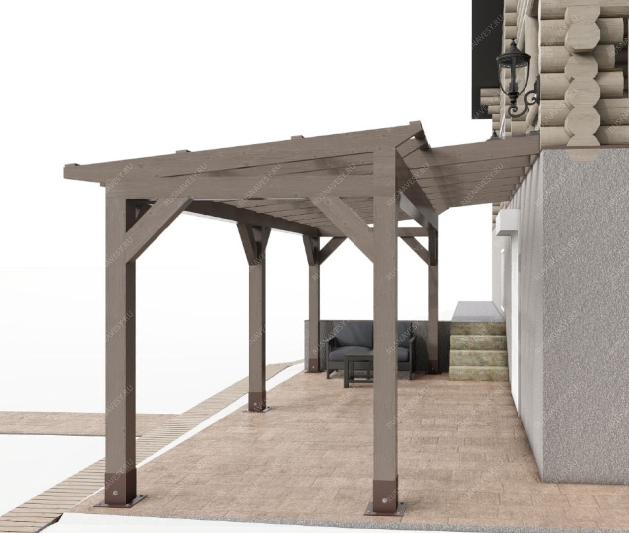 Навес к частному дому для автомобиля ГРИМСТАД