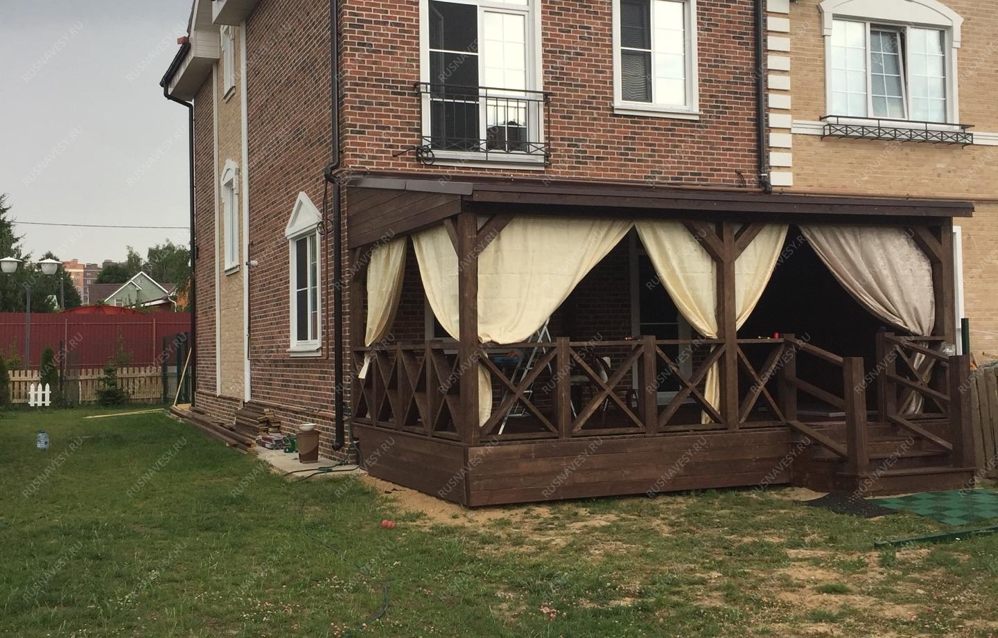 Конструкция изготовлена из хвойных пород древесины (ель, сосна). Сорт по лицевой стороне: АВ Материал -массив сухой строганый камерной сушки. Возможна замена: Материал - клееный брус +массив строганый камерной сушки или Лиственница..
