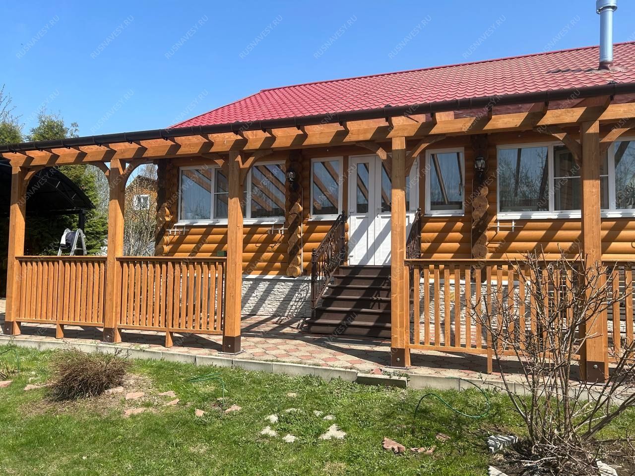 Конструкция изготовлена из хвойных пород древесины (ель, сосна). Сорт по лицевой стороне: АВ Материал -массив сухой строганый камерной сушки. Возможна замена: Материал - клееный брус +массив строганый камерной сушки или Лиственница..