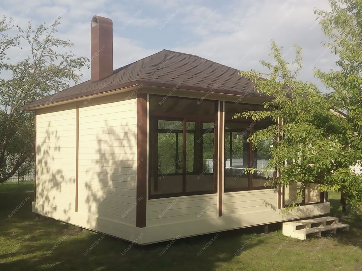 Имитация бруса 16×135 мм внутри, имитация бруса 21×135 мм снаружи.
